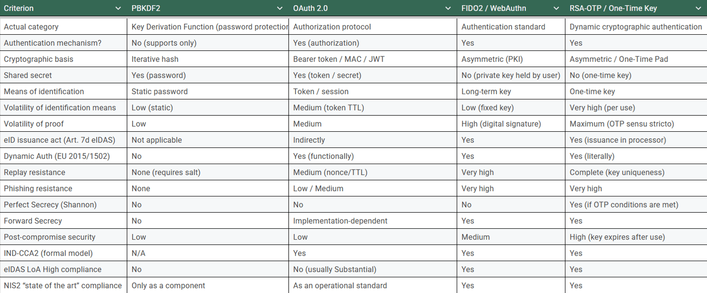 CyberAuth2 implements definitional "Dynamic Authentication" and meets the requirements of (EU) 2022/2555 – NIS2 – for (EU) 2014/910 Article 8.3, the minimum technical specifications required by the NIS-2 directive implemented by (EU) 2015/1502. Additionally, the proposed solution fulfills the requirements of "PasswordLess" and "PostQuantum" as the only one in the country, the EU, and worldwide.